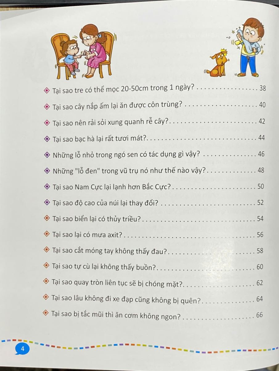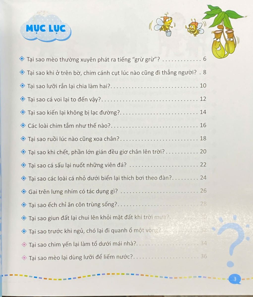 Tuyển chọn câu hỏi mà trẻ em tò mò nhất với tiêu trí thú vị , thần kỳ , mới mẻ , đặc sắc . Trong cuốn sách có lời giải thích khoa học , những hình ảnh minh họa đẹp , để trẻ tiếp nhận kiến thức khoa học với tâm trạng thoải mái , vui vẻ . Trong mỗi cột câu hỏi còn thiết kế ô riêng biệt để trẻ trình bày những điều mình hiểu biết về vấn đề đó .