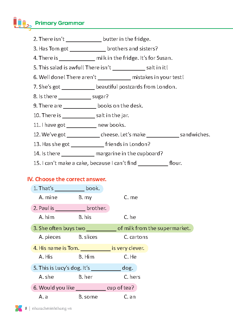 - Hệ thống bài tập phong phú: Sách có hệ thống bài tập phong phú, đa dạng, giúp học sinh rèn luyện kiến thức ngữ pháp một cách hiệu quả.