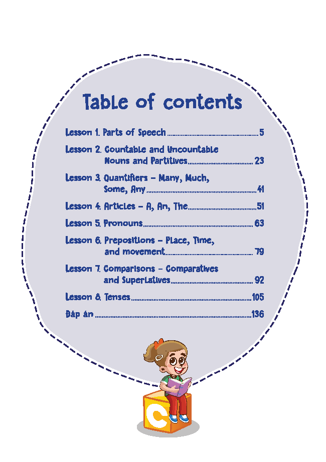 Bộ sách “English Grammar” được các tác giả biên soạn gồm các cấp độ từ cơ bản đến nâng cao, phù hợp với học sinh từ 6-15 tuổi. Đây là cuốn sách ngữ pháp chuyên sâu giúp cha mẹ đồng hành cùng các con chinh phục các chứng chỉ quốc tế.