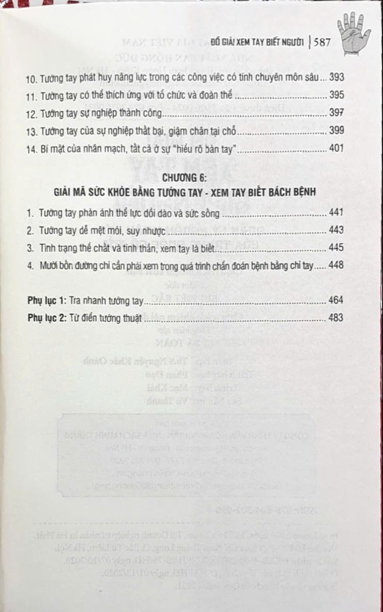 tướng tay và tích cách , vận mệnh của con người , giúp bạn mở sách là có thể kiểm chứng được, hiểu được toàn bộ , dễ dàng nắm được kỹ xảo vận dụng trong xem tướng tay , dùng