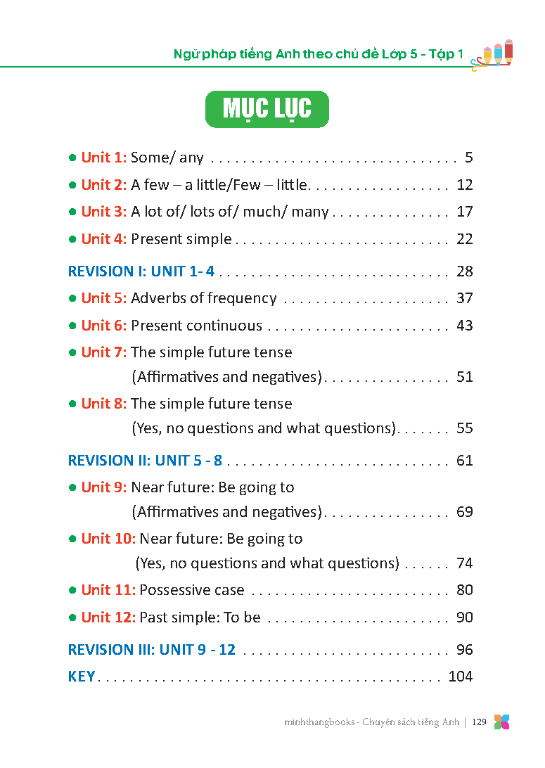 • Bám sát chương trình sách giáo khoa: Sách bám sát chương trình sách giáo khoa Tiếng Anh lớp 5, giúp học sinh ôn tập và củng cố kiến thức ngữ pháp đã học.