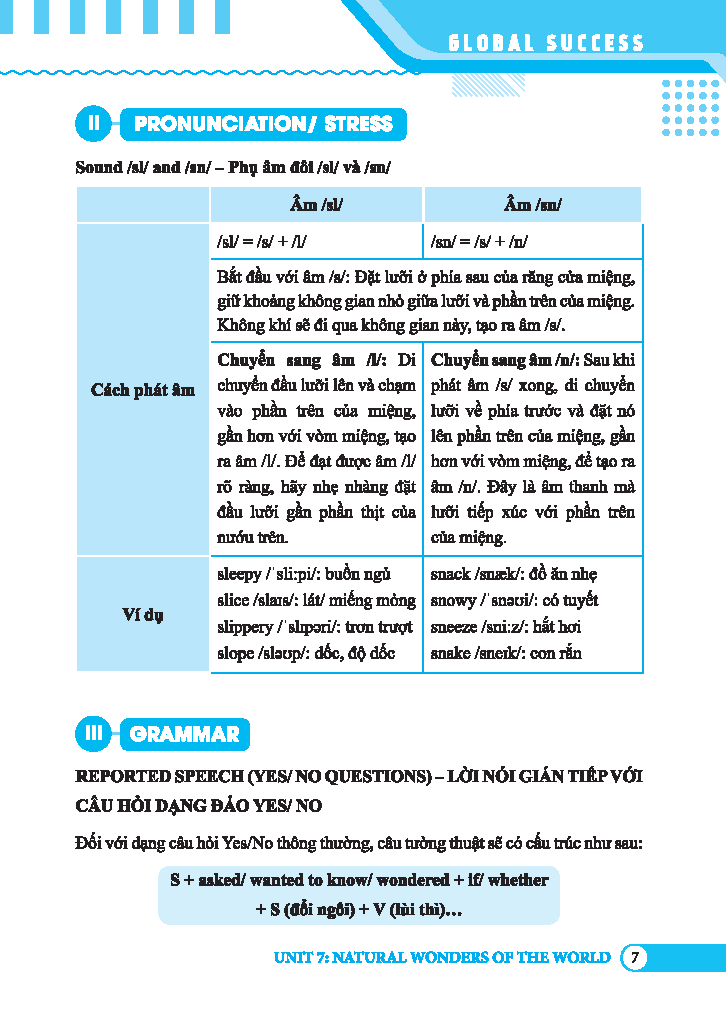 Cuốn sách bao gồm 6 đơn vị bài học từ unit 7 - unit 12 theo chương trình sách giáo khoa GLOBAL SUCCESS